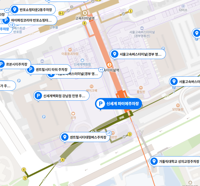3. 센트럴시티 파미에스테이션 주차장(반포천 복개주차장)