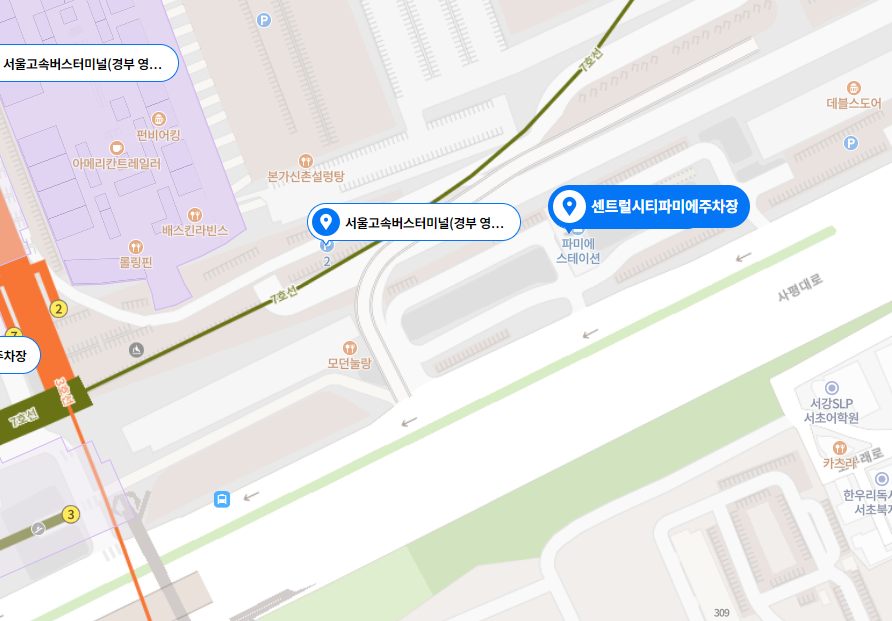 서울 서초구 사평대로 205 CENTRALCITY 반포천 복개주차장