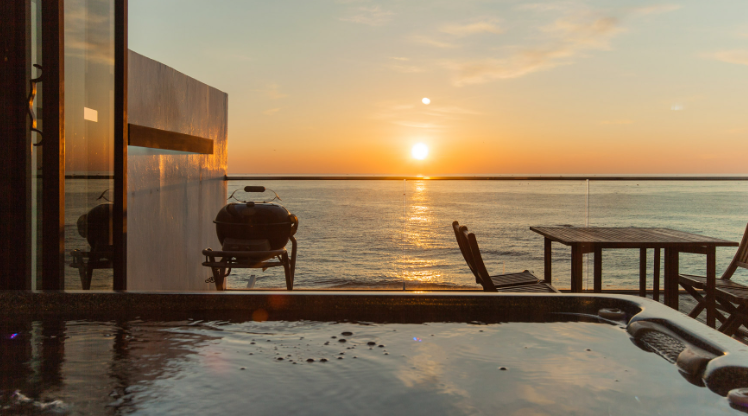 전반적으로 심플한 화이트 톤의 심플한 방이며 테라스 내에 테이블이 있어 경치를 즐기며 맛있은 음식과 함께 힐링하기 좋다. 전반적으로 깔끔하다는 평이 매우 많으며 오션뷰이지만 노을뷰를 볼 수 있다는 장점이 있다.