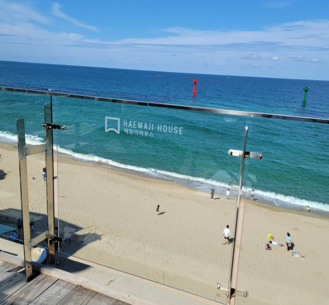 바다와 가장 가깝운 펜션 해맞이하우스. 루프탑을 보유하고 있으며 정면 와이드 바다뷰를 자랑하는 펜션이다. 뮤직룸과 같이 음질좋은 스피커가 비치된 방도 있으며 뷰와 룸컨디션 모두 만족한다는 리뷰가 많은 펜션이다. 루프탑에서는 바베큐도 함께 할 수 있다보니 계절마다 찾는 단골손님이 많은 펜션이다.