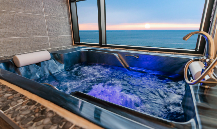 창밖 가득 펼쳐지는 오션뷰 스파펜션이다. 넓은 통창이 상당히 고급스러운 분위기를 내주며 야간에는 해변에 불빛이 들어와 저녁 오션뷰의 단점을 장점으로 돋보이는 펜션이다. 복층으로 되어있는 룸도 있으며 근처에 수상레저와 해수욕장이 있고 개별바베큐가 가능하다.
