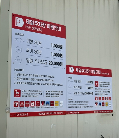 속초중앙시장에서 쇼핑시 주차권을 주기도 하지만, 1일 최대요금이 6,000원 정도수준의 매우 저렴한 주차장이라 부담없이 이용하기 좋다.